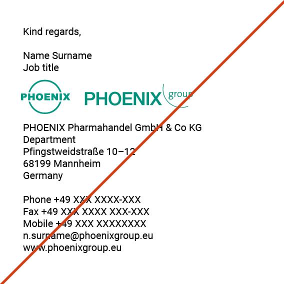 Co-branding using the PHOENIX group logo is generally not permitted. This applies to all documents types, including letterheads, business cards, presentations, etc. as well as digital channels. Exceptions to this rule can be made for internal, PHOENIX-only events.